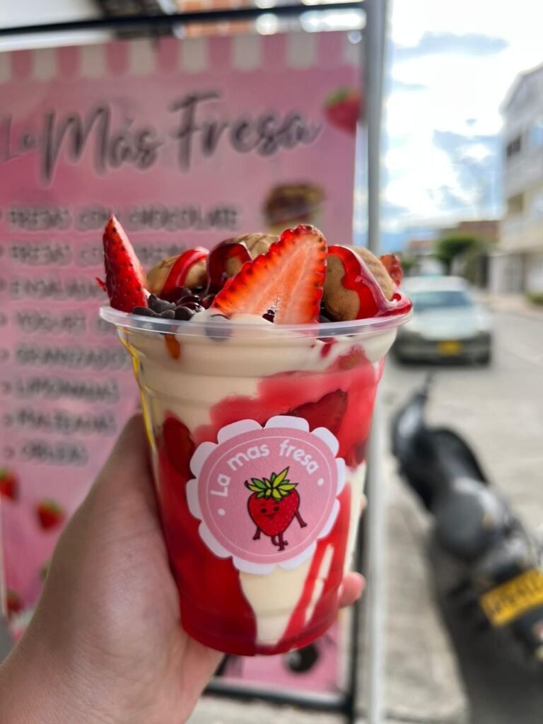 FRESAS CON CREMA: jugosas rojas fresas, crema suave y ligera sabor dulce y textura fresca. FRESAS CON CHOCOLATE: Delicioso chocolate con un toque de maní y fresas dulces. OBLEAS: galleta crujiente ideal para un snack. SANDIWCH Y LIMONADA: combinación refrescante. un sándwich acompañado de una limonada cítrica y fría. GRANIZADOS: Refrescante y delicioso para calmar el calor.MALTEADAS: Cremosas y refrescantes bebidas echas con leche.